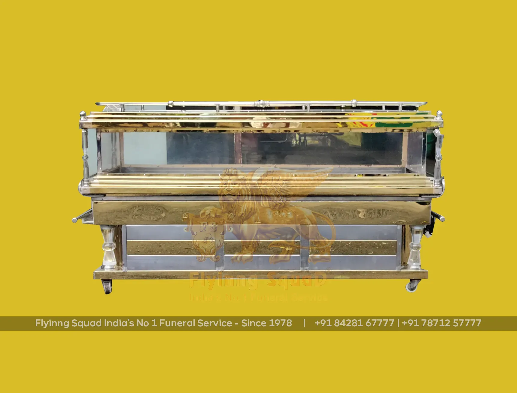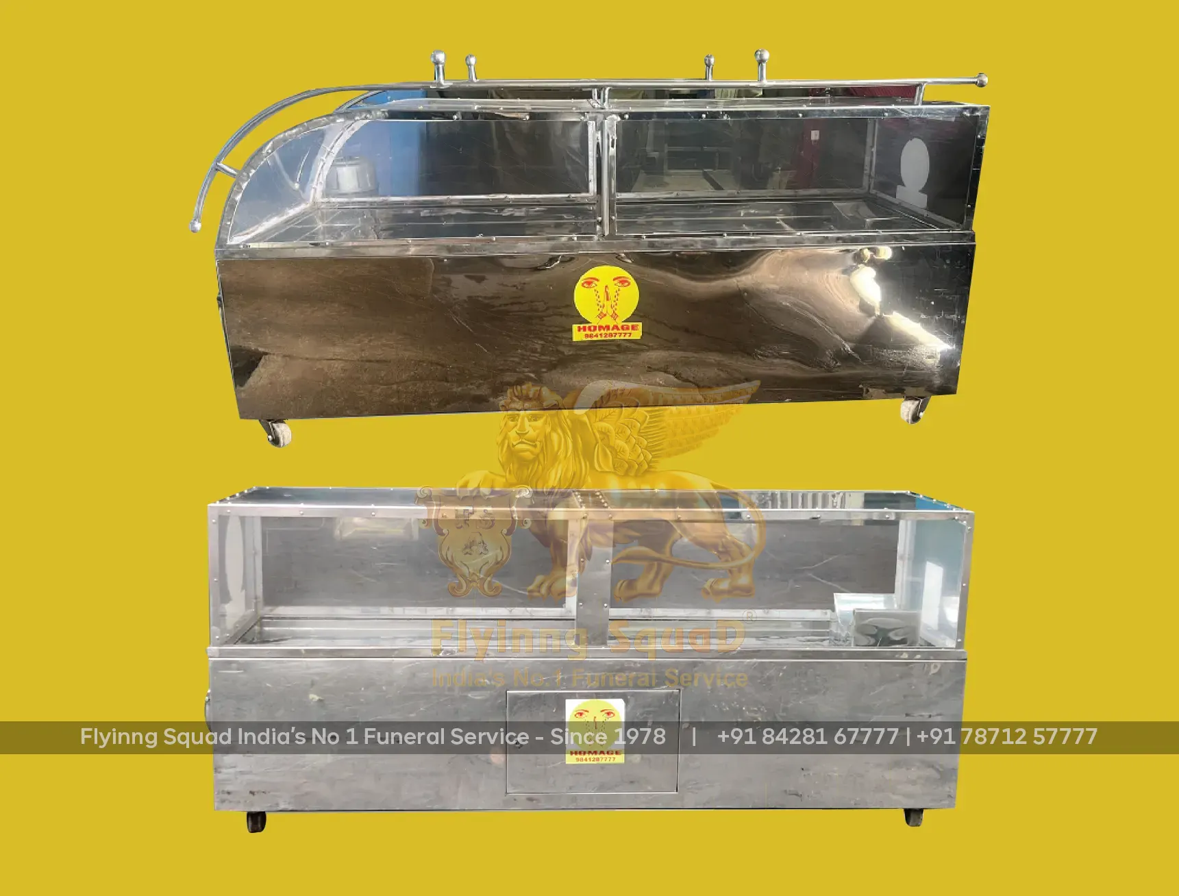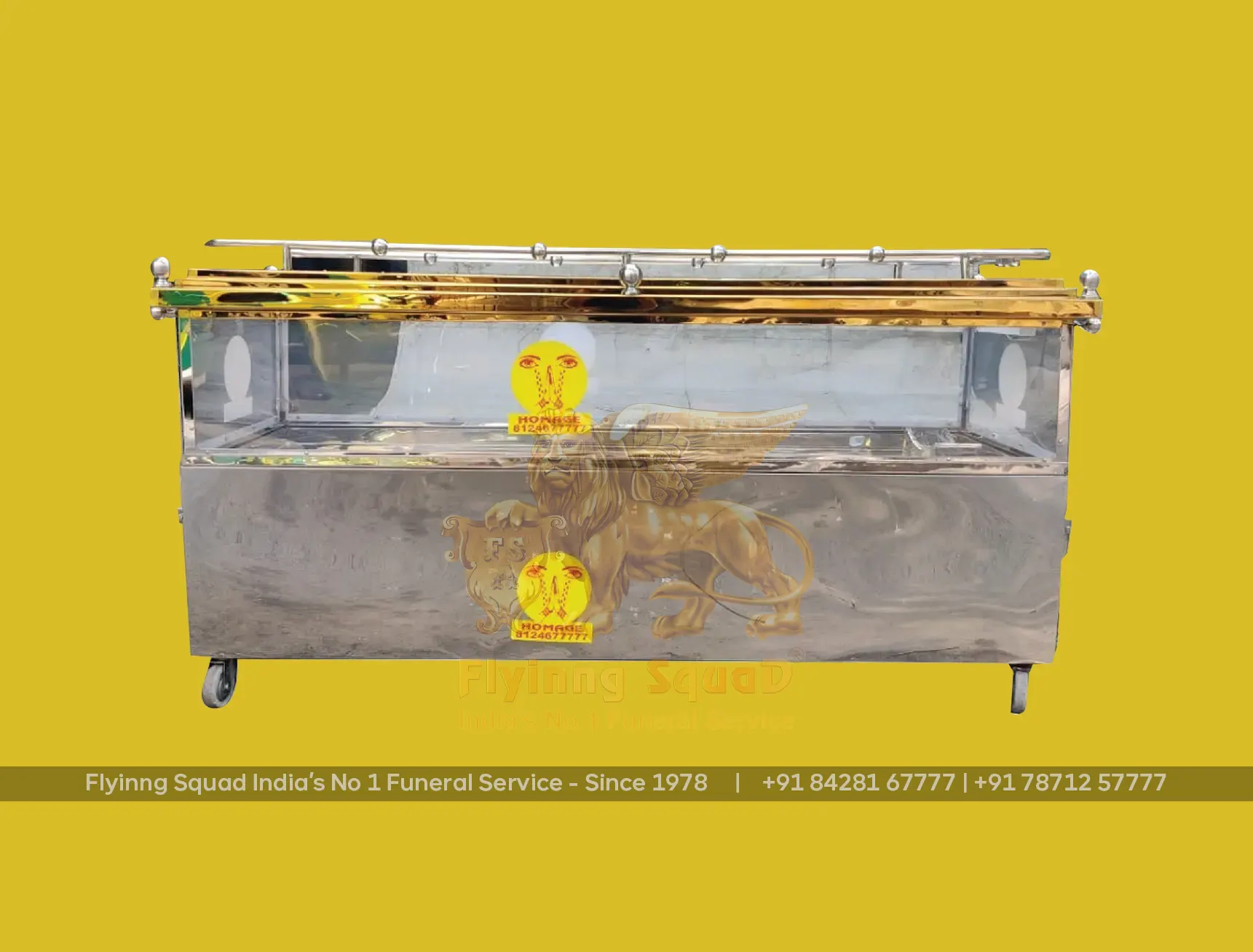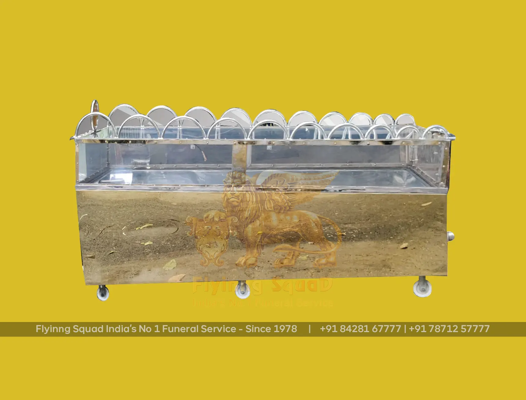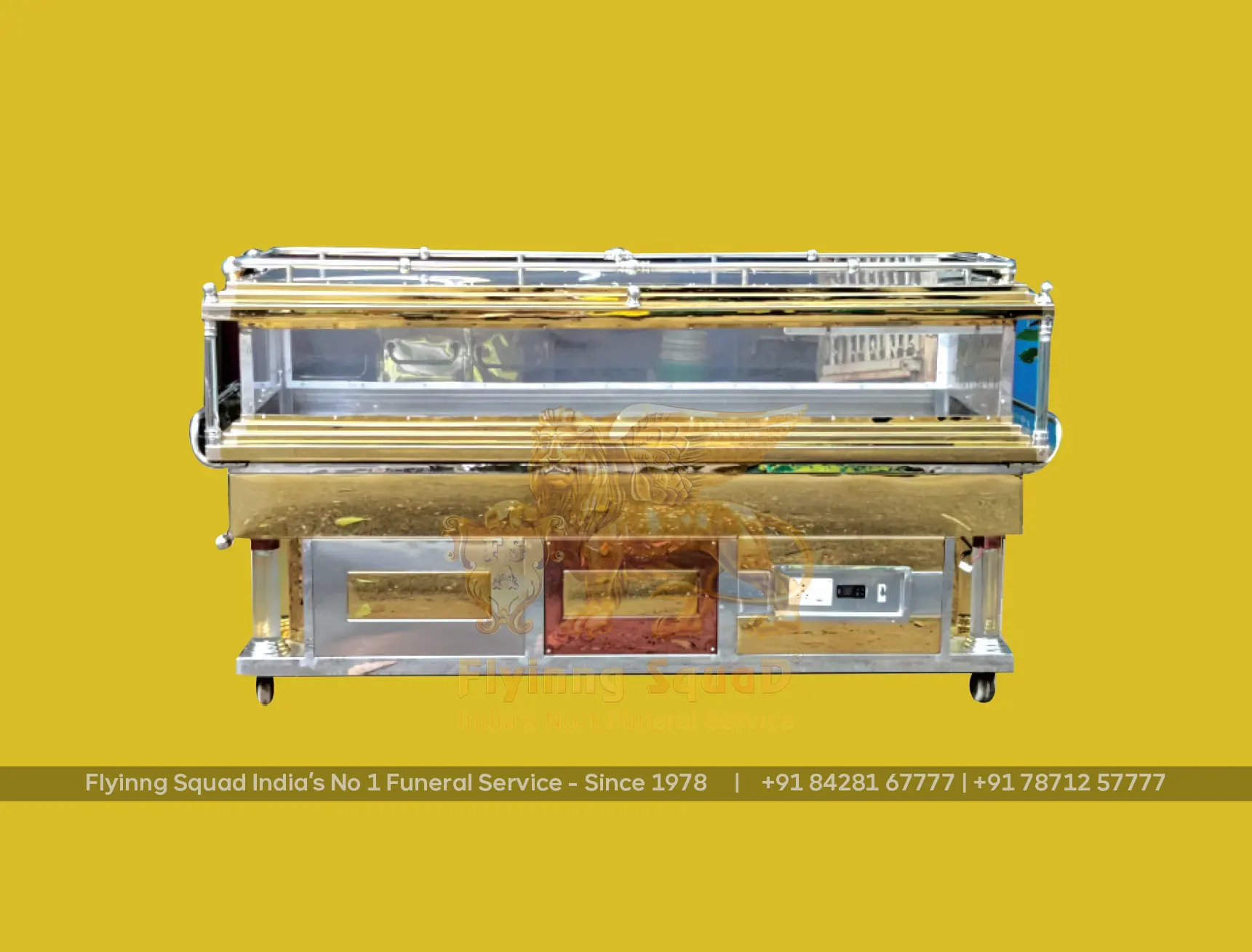 Flyinng Squad, a leader in mobile freezer box innovation, has designed, engineered(1996) and patented (No.180768 - 11th November 1999) mobile freezer boxes in various sizes and types, including VIP and VVIP models. Additionally, we have developed specialized mobile freezer boxes for pet animals to ensure the proper preservation of cherished companions.